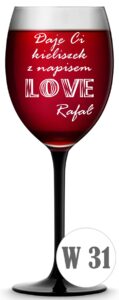 Polecamy Państwu kieliszek do wina, który będzie wyjątkowym prezentem dla bliskiej osoby, na urodziny, imieniny, Walentynki, Dzień Kobiet itp. Możliwość indywidualnego oznakowania sprawia, że taki upominek będzie wyjątkowy i jedyny w swoim rodzaju, a osobie obdarowanej sprawi wielką niespodziankę.